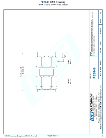 PE9649 CAD Drawing 3.5mm Male to 2.4mm Male Adapter PE9649 REV 1.2 3
