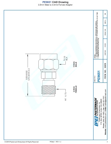 PE9651 CAD Drawing 3.5mm Male to 2.4mm Female Adapter PE9651 REV 1.2 3