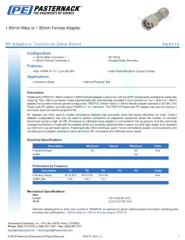 RF Adapters Technical Data Sheet PE9715