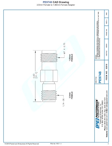 PE9748 CAD Drawing 3.5mm Female to 1.85mm Female Adapter PE9748 REV 1.1 3