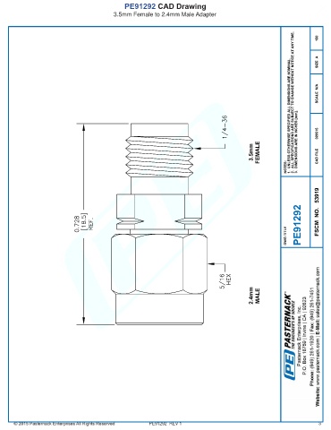PE91292 CAD Drawing 3.5mm Female to 2.4mm Male Adapter PE91292 REV 1 3