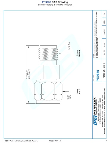PE9650 CAD Drawing 3.5mm Female to 2.4mm Male Adapter PE9650 REV 1.2 4
