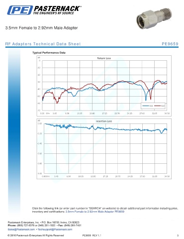 inventory and certifications: 3.5mm Female to 2.92mm Male Adapter PE9659