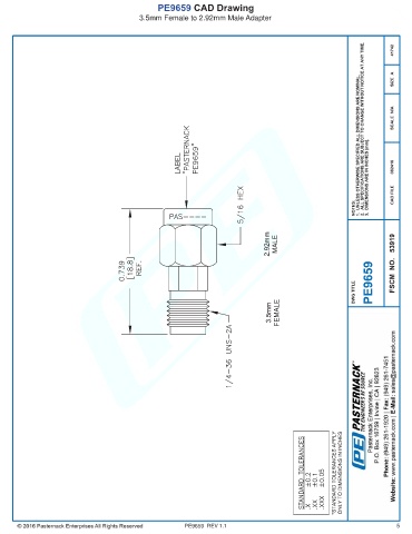PE9659 CAD Drawing 3.5mm Female to 2.92mm Male Adapter PE9659 REV 1.1 5