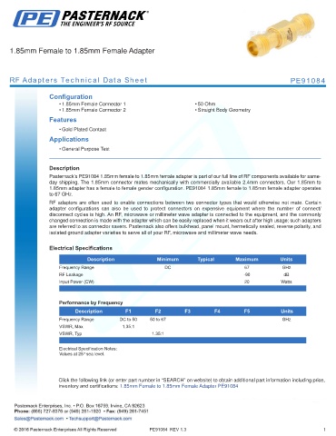 RF Adapters Technical Data Sheet PE91084