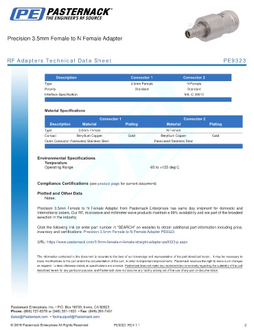 inventory and certifications: Precision 3.5mm Female to N Female Adapter PE9323