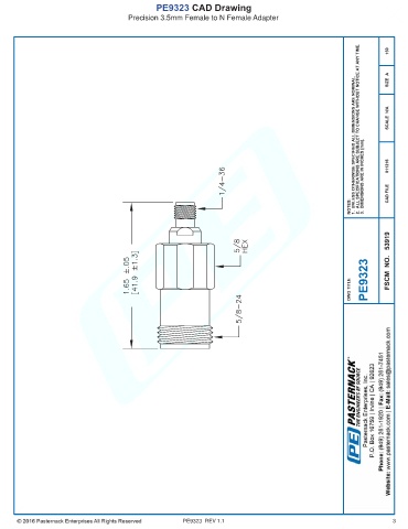 PE9323 CAD Drawing Precision 3.5mm Female to N Female Adapter PE9323 REV 1.1 3