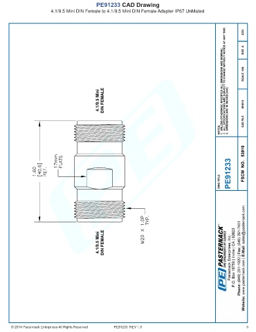 PE91233 CAD Drawing 4.1/9.5 Mini DIN Female to 4.1/9.5 Mini DIN Female Adapter IP67 UnMated © 2014 Pasternack Enterprises All Rights Reserved PE91233 REV 1.0 3