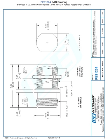 PE91234 CAD Drawing Bulkhead 4.1/9.5 Mini DIN Female to 4.1/9.5 Mini DIN Female Adapter IP67 UnMated © 2014 Pasternack Enterprises All Rights Reserved PE91234 REV 1.0 3