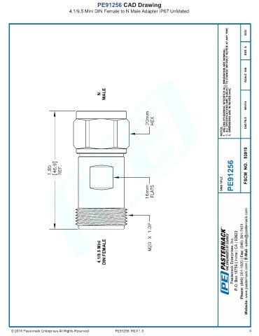 PE91256 CAD Drawing 4.1/9.5 Mini DIN Female to N Male Adapter IP67 UnMated © 2014 Pasternack Enterprises All Rights Reserved PE91256 REV 1.0 3