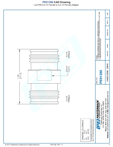 PE91386 CAD Drawing Low PIM 4.3-10 Female to 4.3-10 Female Adapter PE91386 REV 1.0 4