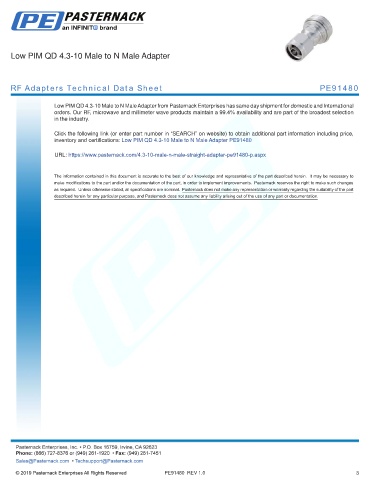 any representation or warranty regarding the suitability of the part described herein for any particular purpose, and Pasternack does not assume any liability arising out of the use of any part or documentation.