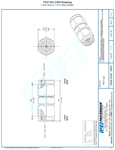 *STANDARD TOLERANCES APPLY ONLY TO DIMENSIONS IN INCHES - Website: www.pasternack.com |