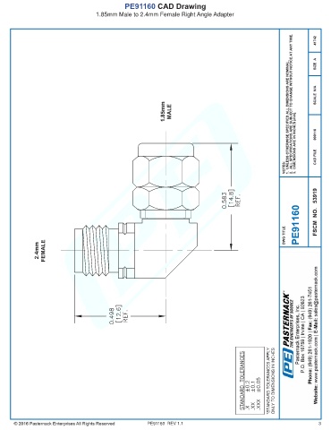 PE91160 CAD Drawing 1.85mm Male to 2.4mm Female Right Angle Adapter PE91160 REV 1.1 3