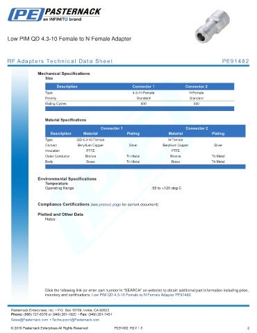 RF Adapters Technical Data Sheet PE91482