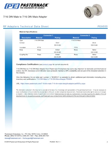 inventory and certifications: 7/16 DIN Male to 7/16 DIN Male Adapter PE9555