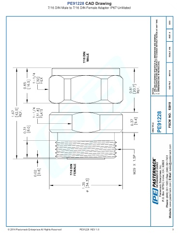 PE91228 CAD Drawing 7/16 DIN Male to 7/16 DIN Female Adapter IP67 UnMated © 2014 Pasternack Enterprises All Rights Reserved PE91228 REV 1.0 3