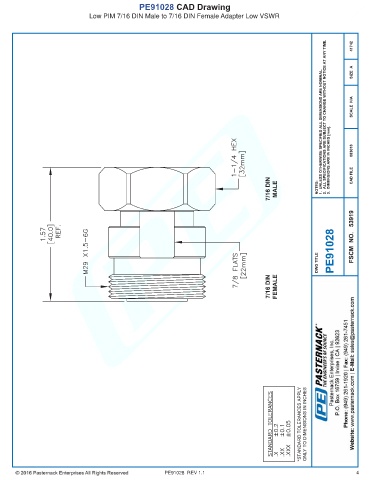 PE91028 CAD Drawing Low PIM 7/16 DIN Male to 7/16 DIN Female Adapter Low VSWR PE91028 REV 1.1 4