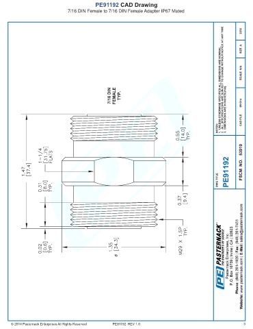 PE91192 CAD Drawing 7/16 DIN Female to 7/16 DIN Female Adapter IP67 Mated © 2014 Pasternack Enterprises All Rights Reserved PE91192 REV 1.0 3