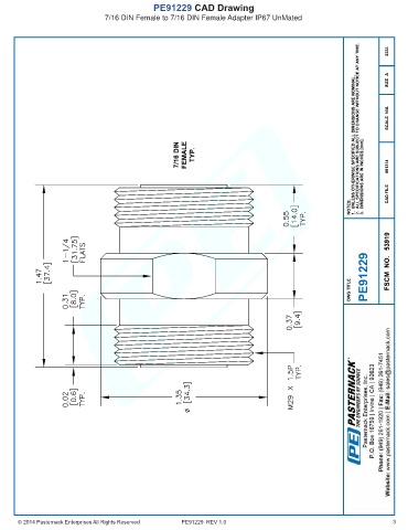 PE91229 CAD Drawing 7/16 DIN Female to 7/16 DIN Female Adapter IP67 UnMated © 2014 Pasternack Enterprises All Rights Reserved PE91229 REV 1.0 3
