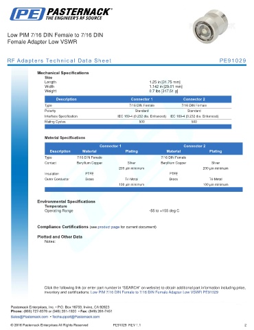 RF Adapters Technical Data Sheet PE91029