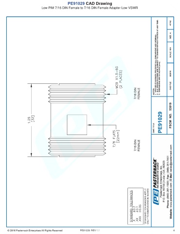 PE91029 CAD Drawing Low PIM 7/16 DIN Female to 7/16 DIN Female Adapter Low VSWR PE91029 REV 1.1 4