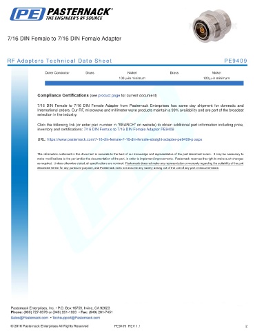 inventory and certifications: 7/16 DIN Female to 7/16 DIN Female Adapter PE9409