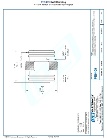 PE9409 CAD Drawing 7/16 DIN Female to 7/16 DIN Female Adapter PE9409 REV 1.1 3