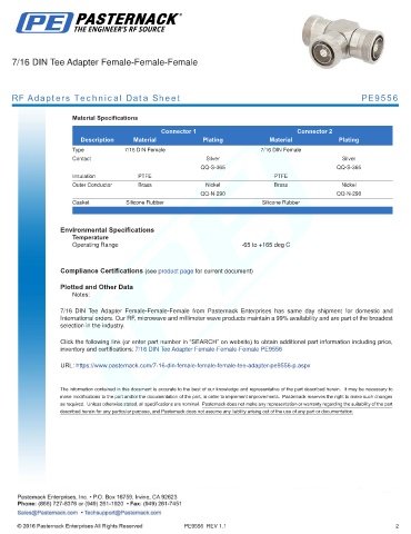 RF Adapters Technical Data Sheet PE9556