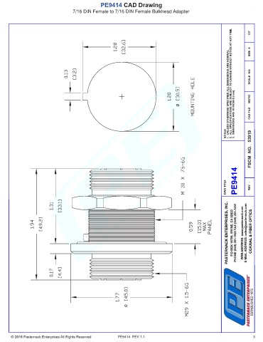PE9414 CAD Drawing 7/16 DIN Female to 7/16 DIN Female Bulkhead Adapter PE9414 REV 1.1 3