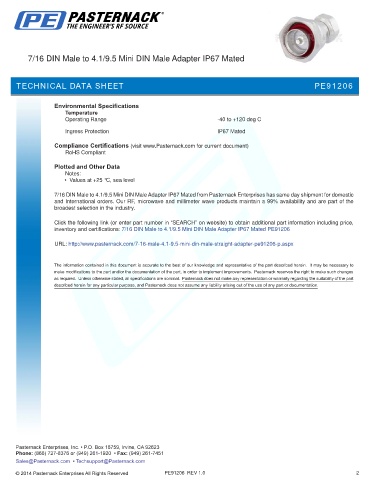 inventory and certifications: 7/16 DIN Male to 4.1/9.5 Mini DIN Male Adapter IP67 Mated PE91206