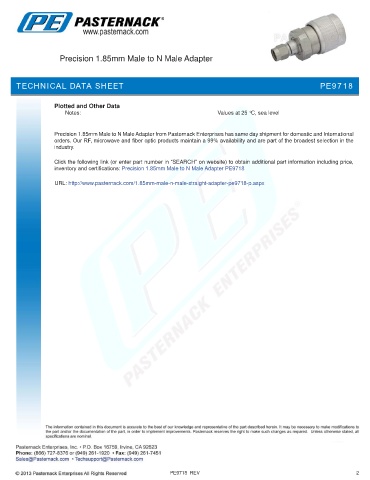 inventory and certifications: Precision 1.85mm Male to N Male Adapter PE9718