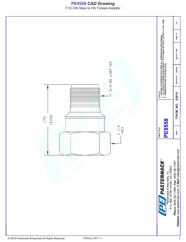 PE9558 CAD Drawing 7/16 DIN Male to HN Female Adapter PE9558 REV 1.1 3