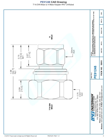 PE91248 CAD Drawing 7/16 DIN Male to N Male Adapter IP67 UnMated © 2014 Pasternack Enterprises All Rights Reserved PE91248 REV 1.0 3
