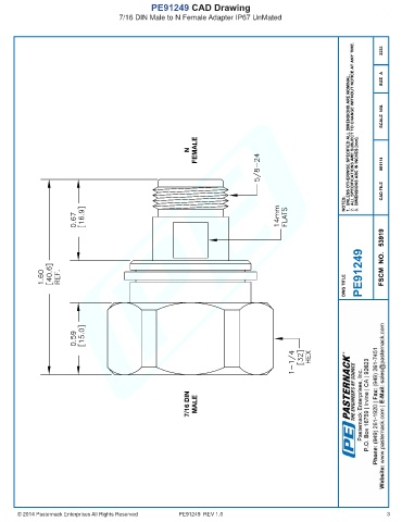 PE91249 CAD Drawing 7/16 DIN Male to N Female Adapter IP67 UnMated © 2014 Pasternack Enterprises All Rights Reserved PE91249 REV 1.0 3
