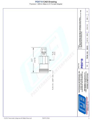 PE9719 CAD Drawing Precision 1.85mm Male to N Female Adapter © 2013 Pasternack Enterprises All Rights Reserved PE9719 REV 3