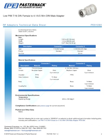inventory and certifications: Low PIM 7/16 DIN Female to 4.1/9.5 Mini DIN Male Adapter PE91090