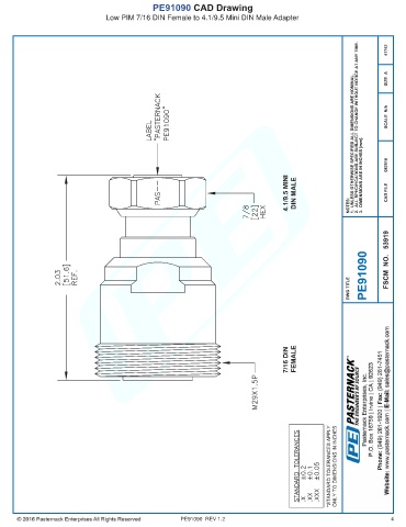 PE91090 CAD Drawing Low PIM 7/16 DIN Female to 4.1/9.5 Mini DIN Male Adapter PE91090 REV 1.2 4