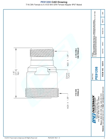 PE91208 CAD Drawing 7/16 DIN Female to 4.1/9.5 Mini DIN Female Adapter IP67 Mated © 2014 Pasternack Enterprises All Rights Reserved PE91208 REV 1.0 3