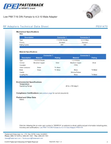 inventory and certifications: Low PIM 7/16 DIN Female to 4.3-10 Male Adapter PE91470