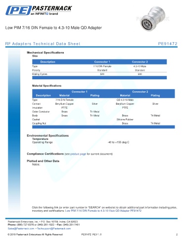 RF Adapters Technical Data Sheet PE91472