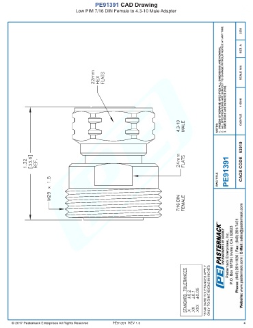 PE91391 CAD Drawing Low PIM 7/16 DIN Female to 4.3-10 Male Adapter PE91391 REV 1.0 4