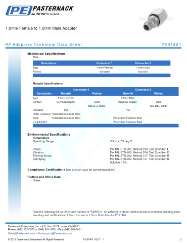 any representation or warranty regarding the suitability of the part described herein for any particular purpose, and Pasternack does not assume any liability arising out of the use of any part or documentation.