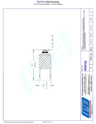 PE9752 CAD Drawing 10-32 Female to BNC Female Adapter PE9752 REV 1.1 3
