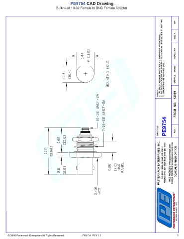 PE9754 CAD Drawing Bulkhead 10-32 Female to BNC Female Adapter PE9754 REV 1.1 3