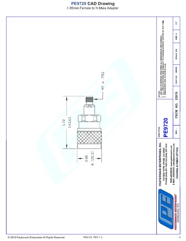 PE9720 CAD Drawing 1.85mm Female to N Male Adapter PE9720 REV 1.2 4