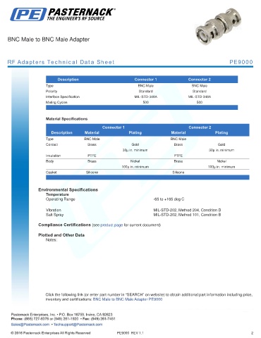 inventory and certifications: BNC Male to BNC Male Adapter PE9000