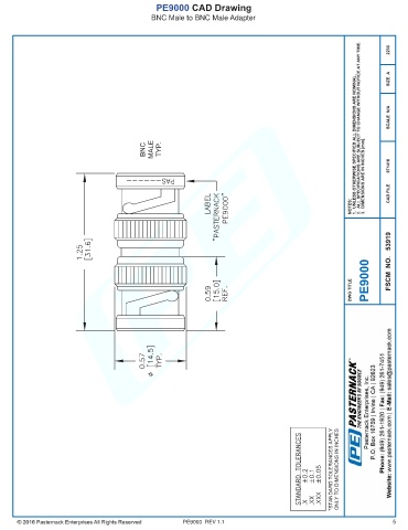 PE9000 CAD Drawing BNC Male to BNC Male Adapter PE9000 REV 1.1 5