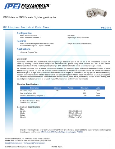 RF Adapters Technical Data Sheet PE9085