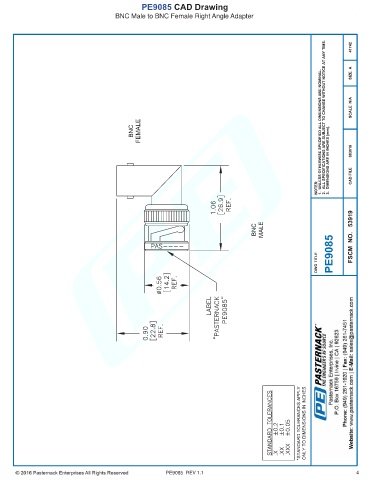 PE9085 CAD Drawing BNC Male to BNC Female Right Angle Adapter PE9085 REV 1.1 4